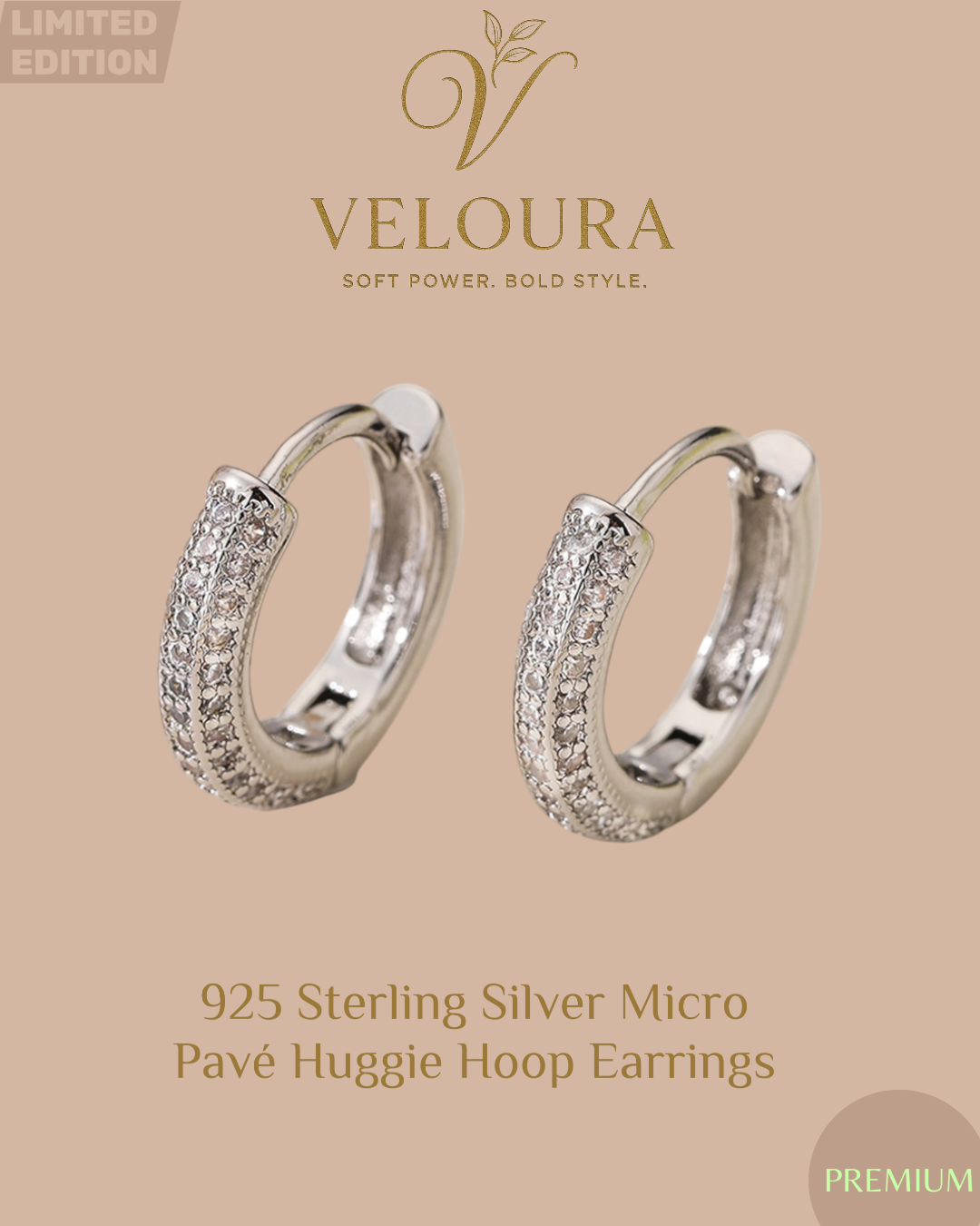 Quiet sparkle for every day. These close-fitting huggie hoops sit snug to the lobe and catch the light with a fine row of micro pavé stones. They’re lightweight, comfortable, and snap closed with a secure hinge.