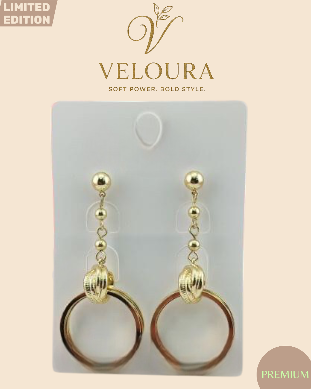 Delicate movement. Easy shine. These drops start with a polished stud, flow into a slim bead-chain, then finish with a ribbed bail and smooth round ring that catches the light as you move. They feel airy on the ear and add a clean, modern finish to everything from tees to satin.