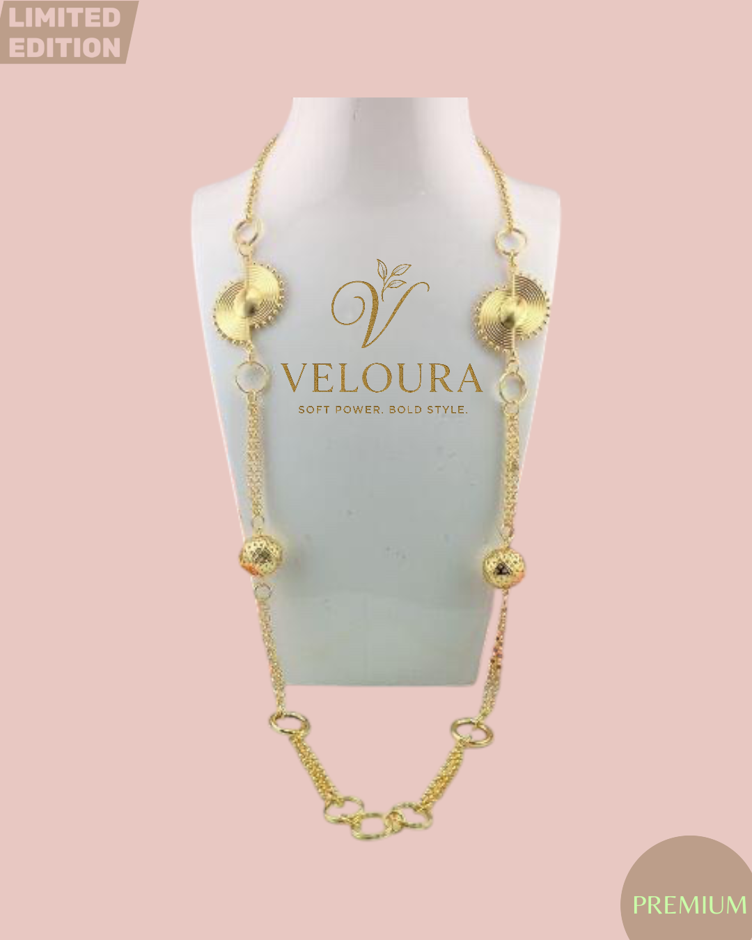 Vintage-inspired shine you can throw on with anything. This long layering chain mixes sculpted coin-style medallions with faceted, light-catching beads and smooth ring connectors. The stations are spaced to create movement and dimension, while the polished gold-tone finish adds a warm glow over knits, blouses, and dresses. Wear it solo for a clean statement or double it up with shorter chains.