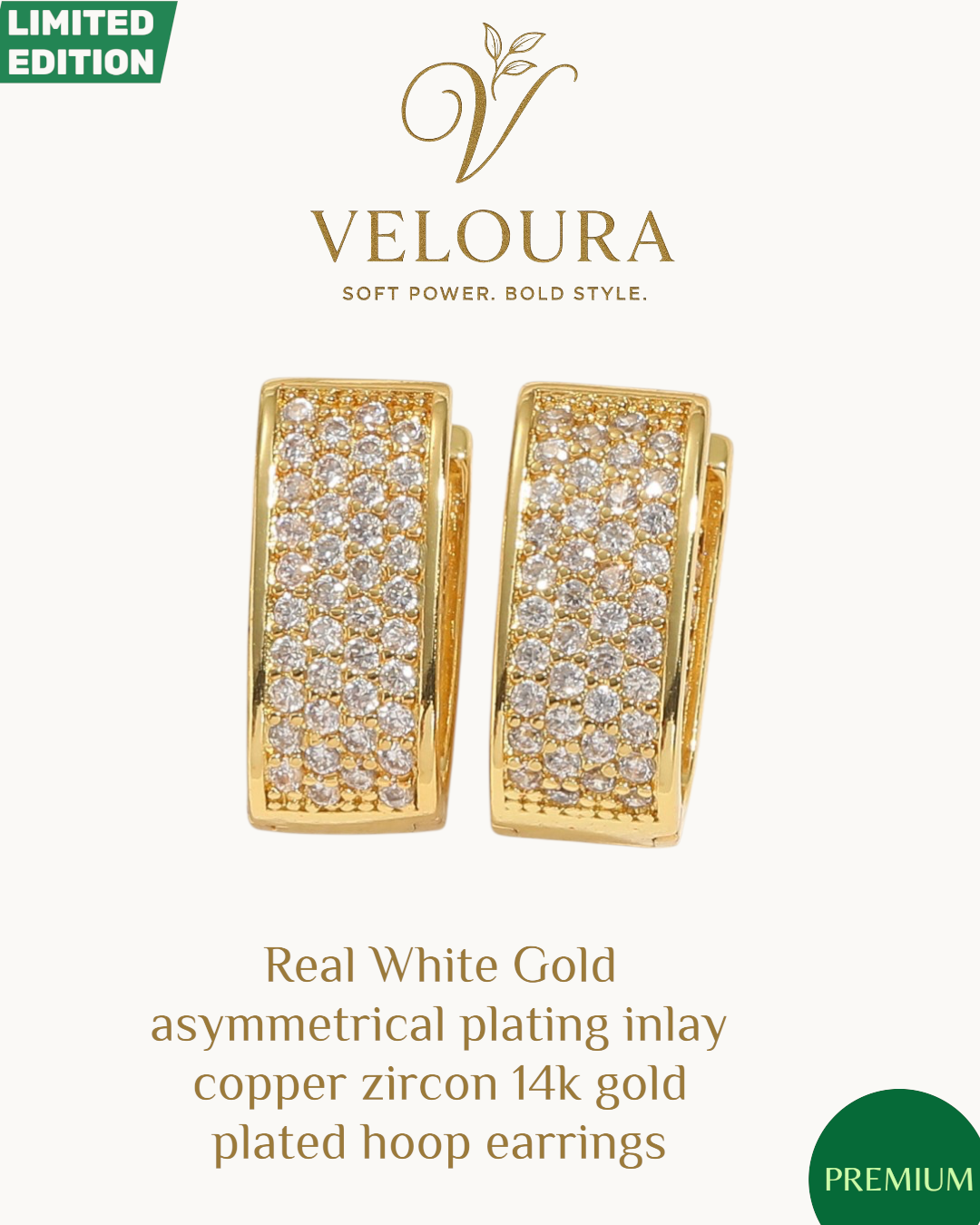 Luxe sparkle in a clean, modern shape. These pavé huggie hoops hug the ear with a slim rectangular curve that catches light from every angle. They feel refined, look polished, and dress up anything from a tee to an evening dress.