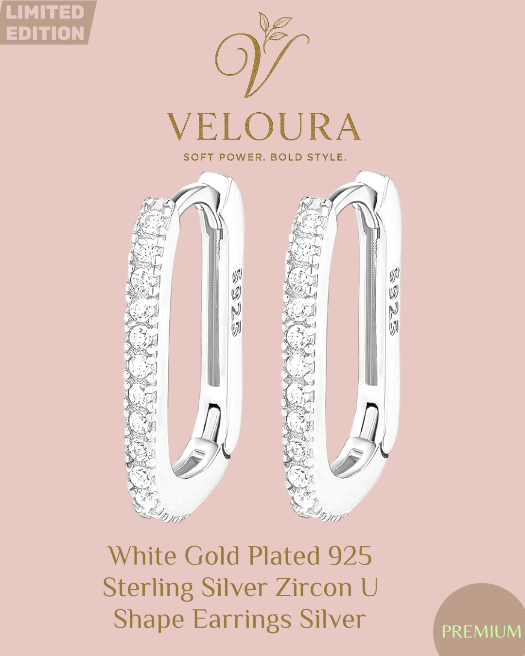 1 pair of White Gold Plated 925 Zircon U-Hoop Earrings